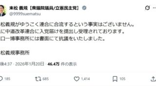 ニュー速 中革連・安住氏「立憲民主党の現職144名全員が中道改革連合の綱領・基本政策に賛同してくれました」
