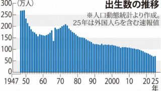 ニュー速+ 出生数過去最少の70万人 推計より17年早い少子化 25年速報値