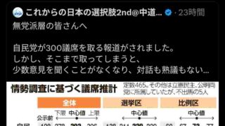 嫌儲 能登、高市自民勝利か…復興のために補正予算引き出した中道議員は劣勢