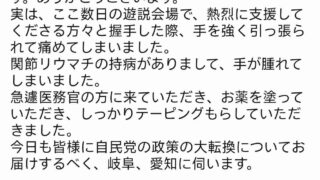 嫌儲 高市首相、支援者と握手した際に手を強く引っ張られたためケガをしたと説明