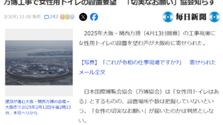 ニュー速 万博工事で女性用トイレの設置要望 「切実なお願い」協会知らず