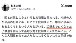 ニュー速 ウーマン村本氏「辺野古で亡くなった子供達を利用して基地反対を批判する人たちがいる」