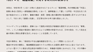 嫌儲 参政党、報道特集に抗議し訂正を求める「明らかな偏向報道だ」