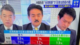 ニュー速 台湾有事で日本は軍事面を含め積極的に関与すべきか? →そう思う83%、思わない9%