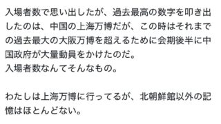 なんG 【正論】辛坊氏「中国上海万博だって大量動員して入場者増やしてたろ💢入場者数なんてそんなも
