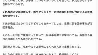 嫌儲 鹿乃つの「ふざけんなよ、万博。全部放置して、説明責任を押し付けてる。私は半年間も攻撃されてる。人生も潰されかけてる」