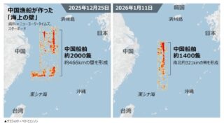 ニュー速 台湾封鎖のため?中国漁船数千隻、東シナ海に466km「海上の壁」を形成