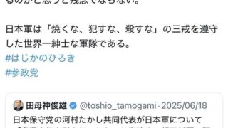 嫌儲 参政党「南京大虐殺はデマ、日本軍は『焼くな、犯すな、56すな』の三戒を遵守した世界一紳士な軍隊である」