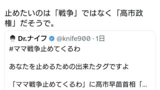 ニュー速 パヨクさん。止めたいのは「戦争」ではなく「高市政権」だそうで
