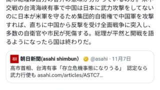 嫌儲 高市首相さん、反省! 「台湾有事について従来の政府の立場を変える物ではない。今後は慎む」