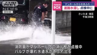 ニュー速 【埼玉】道路水浸し「消火栓が折れて水が漏れている」消防員が点検中…