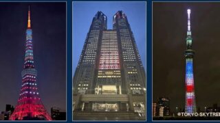 ニュー速+ 【🗼🇺🇸】東京タワー、都庁、スカイツリーが星条旗色に 27~28日、トランプ米大統領来日を歓迎