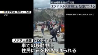 ニュー速+ 【南米】軽油の補助金廃止に反発か…エクアドル大統領の車、住民に囲まれ石投げられる