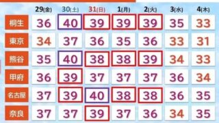 嫌儲 日本の気温がグングン上昇!次の土日は各地で40℃