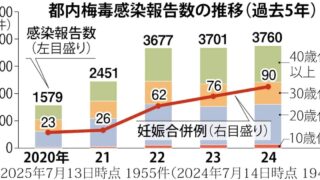 ニュー速+ 「梅毒」感染、都内で過去最多ペース「キスでうつる可能性も」夏休みの若者らに警鐘