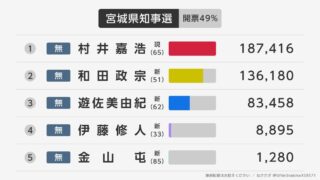 ニュー速 参政党、ネットでデマを散布し宮城県をネトウヨに感染させようと企てるも失敗 移民党の村井が知事優勢