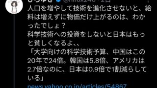 なんG 大学向けの科学技術予算 中国「24倍です😄」日本「0.9倍です😭」