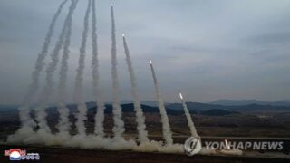 ニュー速 北朝鮮、口径600ミリの大型多連装ロケット砲12発を日本海に発射する訓練