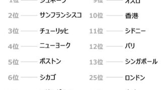 嫌儲 世界の食料品物価、1位ジュネーブ、2位サンフランシスコ、4位NY、8位ソウル、12位パリ、25位ロンドン、東京28位、日本さん食料安すぎる