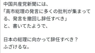 嫌儲 自民党広報「日本政府の立場は一貫しているのに、中国が勝手に高市答弁を”撤回しろ”と言っている。」