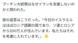 嫌儲 プーチン「イランには悪いけど、もう支援できない。イスラエルにはロシア系住民が多いんだ」