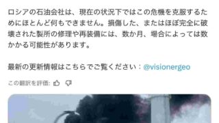 嫌儲 ロシア「ごめん、石油精製能力の38%が失われたけどどうする?」