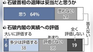 嫌儲 石破首相退陣「妥当」64% 内閣実績「評価せず」55%