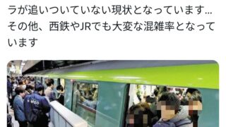嫌儲 【画像】福岡市民「オエエエエエエエッッ!!助けて!無理!満員電車もう無理!!!」