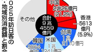 嫌儲 2025年の訪日外国人消費額、中国人がトップ。これが高市のせいで今年からすべて消える