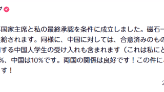 嫌儲 トランプ「中国とのディールは完了した、レアアースも中国が前払いでフル提供、我々は合計55%の関税を得て、中国は10%!