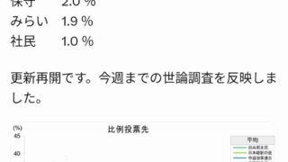嫌儲 比例投票先、自民34中道12国民9維新7