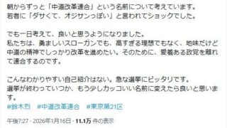 ニュー速+ 衆院選出馬の立憲都議、新党名称に「若者に『オジサンっぽい』と言われショックでした」