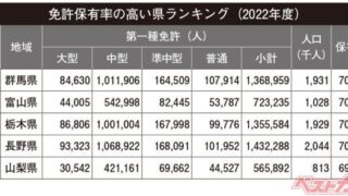 ニュー速 都道府県別に見る「運転免許保有率」 1位群馬 2位富山 3位長野 ビリ東京