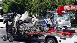 嫌儲 死亡率3倍の「日本製軽自動車」、トラックと正面衝突してしまいグチャグチャに潰れる。2人死亡💀