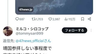 嫌儲 高市さん「外国の首脳と靖国参拝できるような環境を目指す😤」