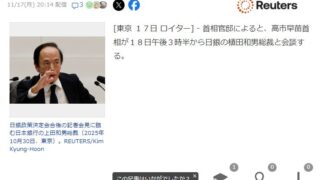 嫌儲 高市首相、18日に植田日銀総裁と会談 午後3時半から